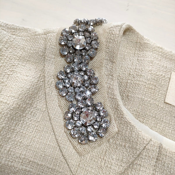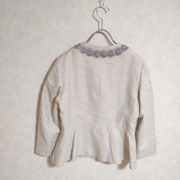 ノーカラージャケット ビジュー付き サイズ38 |