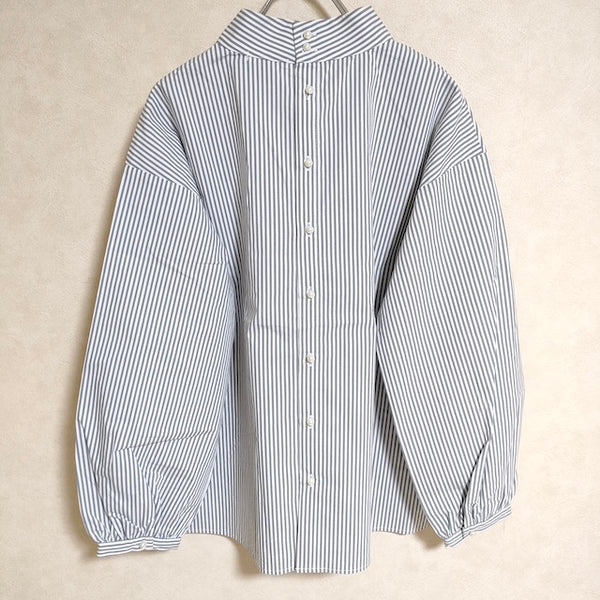 長袖シャツ 新品 ストライプスタンドネックブラウス サイズF |