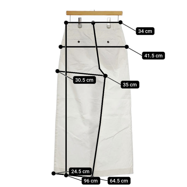 総丈:約96cm ウエスト:約34cm 股上:約35cm 股下:約64.5cm ヒップ:約41.5cm ワタリ幅:約30.5cm 裾幅:約24.5cm ※採寸画像がある商品はハンガーに吊るした状態での計測のため、平置きでの採寸とは差が生じる場合がございます。平置きでの実寸サイズをご希望の場合は、ご購入前に必ずご質問ください。