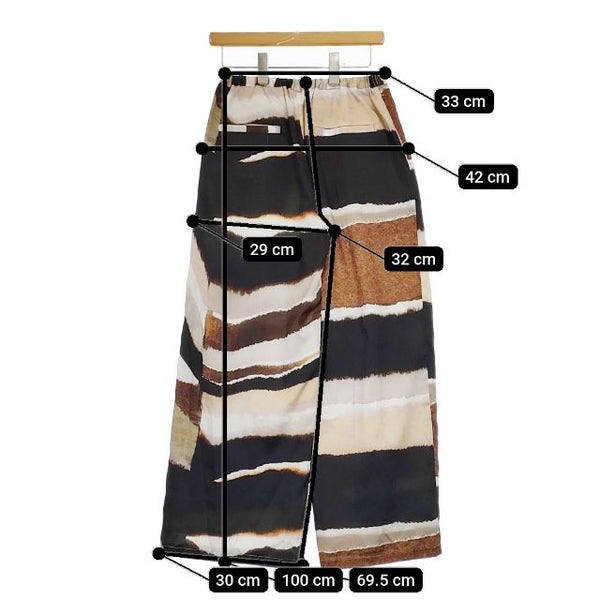 総丈:約100cm ウエスト:約33cm ウエスト最長:約44cm 股上:約32cm 股下:約69.5cm ヒップ:約42cm ワタリ幅:約29cm 裾幅:約30cm ※採寸画像がある商品はハンガーに吊るした状態での計測のため、平置きでの採寸とは差が生じる場合がございます。平置きでの実寸サイズをご希望の場合は、ご購入前に必ずご質問ください。