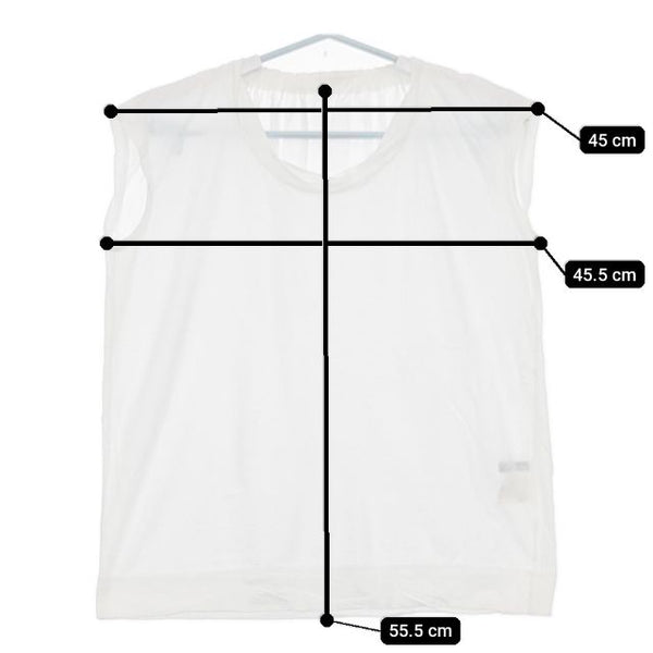 肩幅:約45cm 着丈:約55.5cm 身幅:約45.5cm ※採寸画像がある商品はハンガーに吊るした状態での計測のため、平置きでの採寸とは差が生じる場合がございます。平置きでの実寸サイズをご希望の場合は、ご購入前に必ずご質問ください。