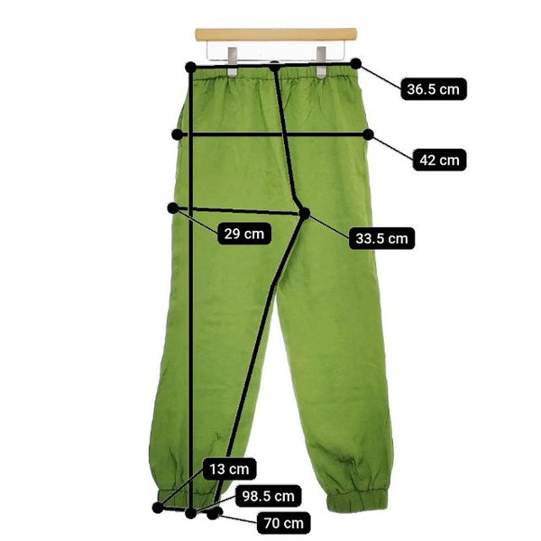 総丈:約98.5cm ウエスト:約36.5cm ウエスト最長:約45cm 股上:約33.5cm 股下:約70cm ヒップ:約42cm ワタリ幅:約29cm 裾幅:約13cm ※採寸画像がある商品はハンガーに吊るした状態での計測のため、平置きでの採寸とは差が生じる場合がございます。平置きでの実寸サイズをご希望の場合は、ご購入前に必ずご質問ください。