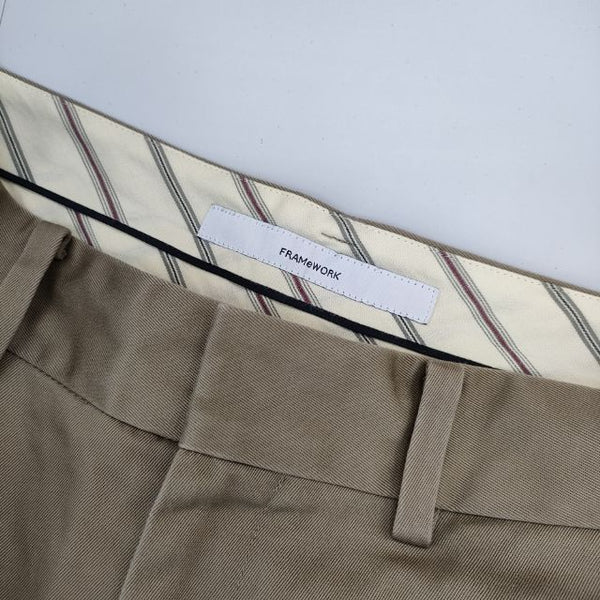 総丈:約102cm ウエスト:約37cm 股上:約33.5cm 股下:約71cm ヒップ:約43cm ワタリ幅:約28cm 裾幅:約22cm ※採寸画像がある商品はハンガーに吊るした状態での計測のため、平置きでの採寸とは差が生じる場合がございます。平置きでの実寸サイズをご希望の場合は、ご購入前に必ずご質問ください。