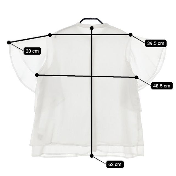 肩幅:約39.5cm 着丈:約62cm 身幅:約48.5cm 袖丈:約20cm ※採寸画像がある商品はハンガーに吊るした状態での計測のため、平置きでの採寸とは差が生じる場合がございます。平置きでの実寸サイズをご希望の場合は、ご購入前に必ずご質問ください。