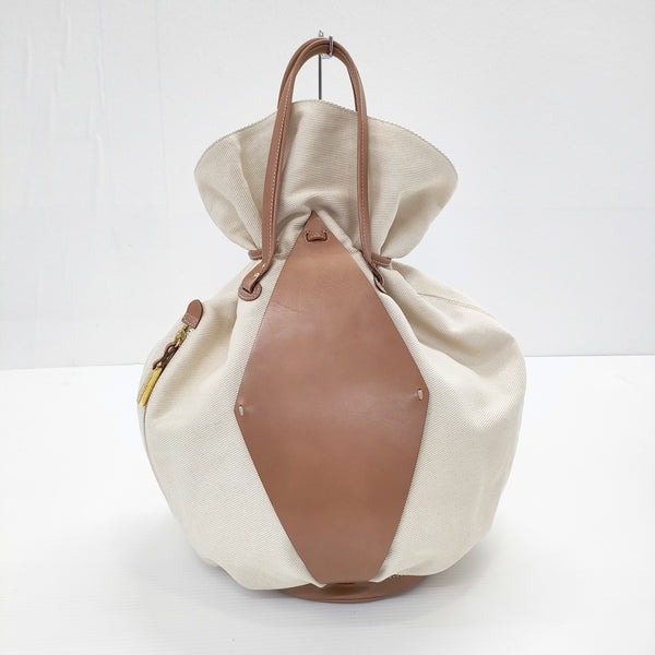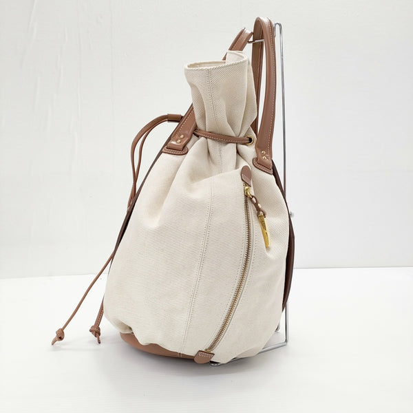 巾着バッグ キャンバス レザー 丸型バッグ |