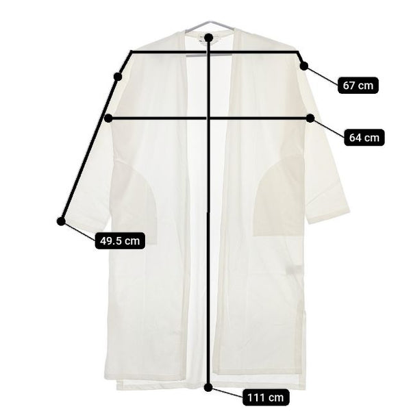 肩幅:約67cm 着丈:約111cm 身幅:約64cm 袖丈:約49.5cm ※採寸画像がある商品はハンガーに吊るした状態での計測のため、平置きでの採寸とは差が生じる場合がございます。平置きでの実寸サイズをご希望の場合は、ご購入前に必ずご質問ください。