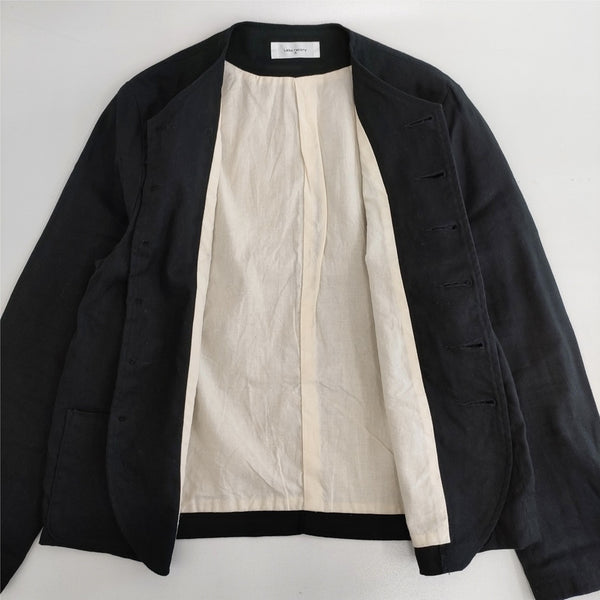 ノーカラージャケット リネンコットン 日本製 サイズF |