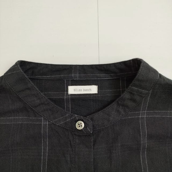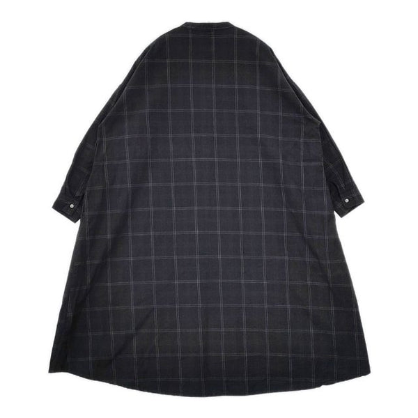 ワンピース バンドカラー シャツワンピ ポケット付き 比翼ボタン コットン チェック |
