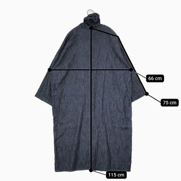 ワンピース インディゴ染め コットンリネン デニムワンピ フード付き |