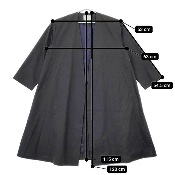 肩幅:約53cm 着丈:約115cm 着丈(前):約120cm 身幅:約63cm 袖丈:約54.5cm ※採寸画像がある商品はハンガーに吊るした状態での計測のため、平置きでの採寸とは差が生じる場合がございます。平置きでの実寸サイズをご希望の場合は、ご購入前に必ずご質問ください。
