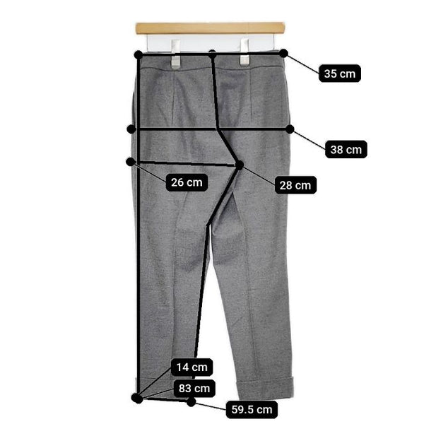 総丈:約83cm ウエスト:約35cm ウエスト最長:約42cm 股上:約28cm 股下:約59.5cm ヒップ:約38cm ワタリ幅:約26cm 裾幅:約14cm ※採寸画像がある商品はハンガーに吊るした状態での計測のため、平置きでの採寸とは差が生じる場合がございます。平置きでの実寸サイズをご希望の場合は、ご購入前に必ずご質問ください。