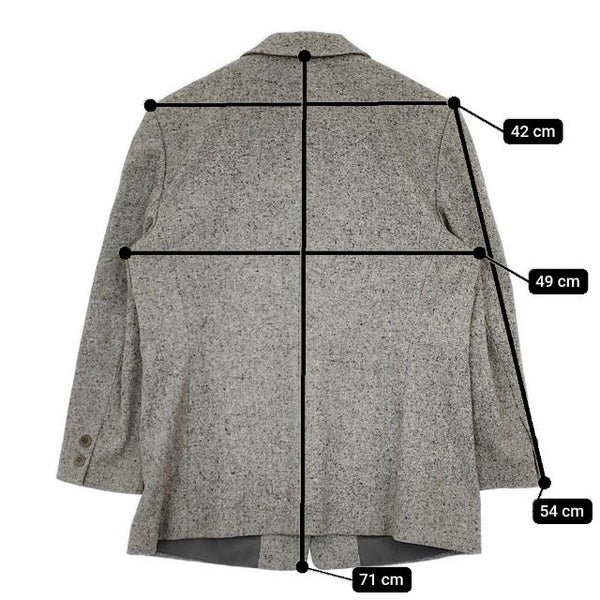 肩幅:約42cm 着丈:約71cm 身幅:約49cm 袖丈:約54cm ウエスト:約36cm ヒップ:約46cm ※採寸画像がある商品はハンガーに吊るした状態での計測のため、平置きでの採寸とは差が生じる場合がございます。平置きでの実寸サイズをご希望の場合は、ご購入前に必ずご質問ください。