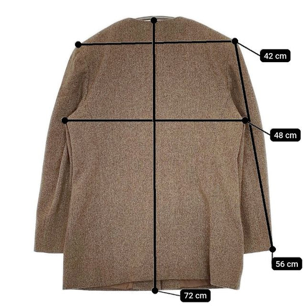 肩幅:約42cm 着丈:約72cm 身幅:約48cm 袖丈:約56cm ※採寸画像がある商品はハンガーに吊るした状態での計測のため、平置きでの採寸とは差が生じる場合がございます。平置きでの実寸サイズをご希望の場合は、ご購入前に必ずご質問ください。