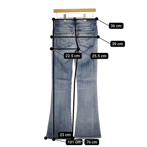 総丈:約101cm ウエスト:約36cm 股上:約25.5cm 股下:約76cm ヒップ:約39cm ワタリ幅:約22.5cm 裾幅:約23cm ※採寸画像がある商品はハンガーに吊るした状態での計測のため、平置きでの採寸とは差が生じる場合がございます。平置きでの実寸サイズをご希望の場合は、ご購入前に必ずご質問ください。