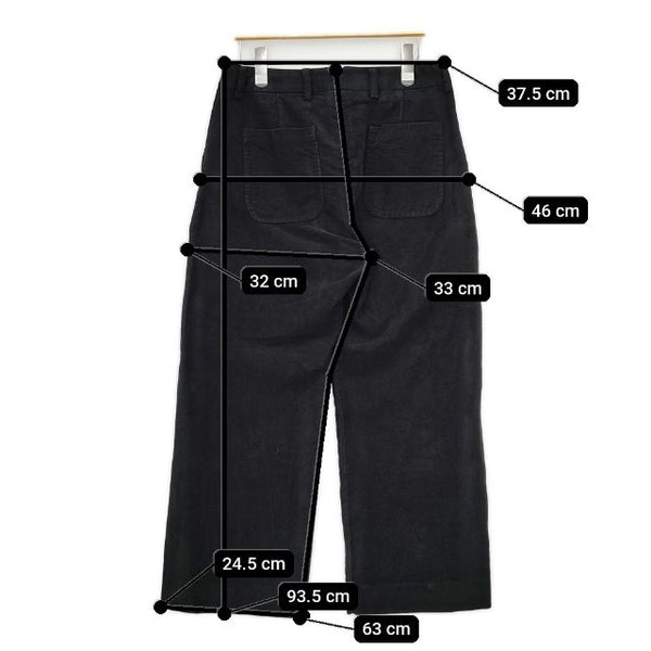 総丈:約93.5cm ウエスト:約37.5cm 股上:約33cm 股下:約63cm ヒップ:約46cm ワタリ幅:約32cm 裾幅:約24.5cm ※採寸画像がある商品はハンガーに吊るした状態での計測のため、平置きでの採寸とは差が生じる場合がございます。平置きでの実寸サイズをご希望の場合は、ご購入前に必ずご質問ください。
