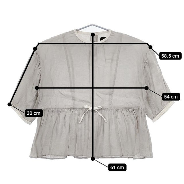 肩幅:約58.5cm 着丈:約61cm 身幅:約54cm 袖丈:約30cm ※採寸画像がある商品はハンガーに吊るした状態での計測のため、平置きでの採寸とは差が生じる場合がございます。平置きでの実寸サイズをご希望の場合は、ご購入前に必ずご質問ください。