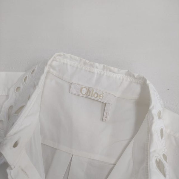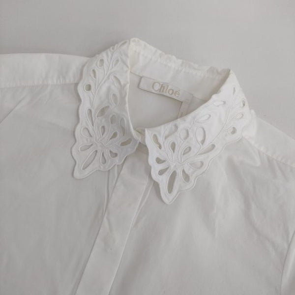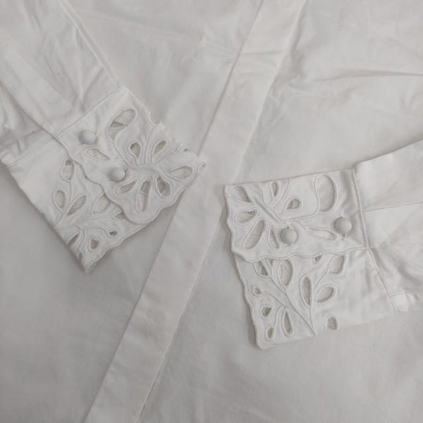ブラウス シャツ カットワーク レース 長袖 比翼ボタン |