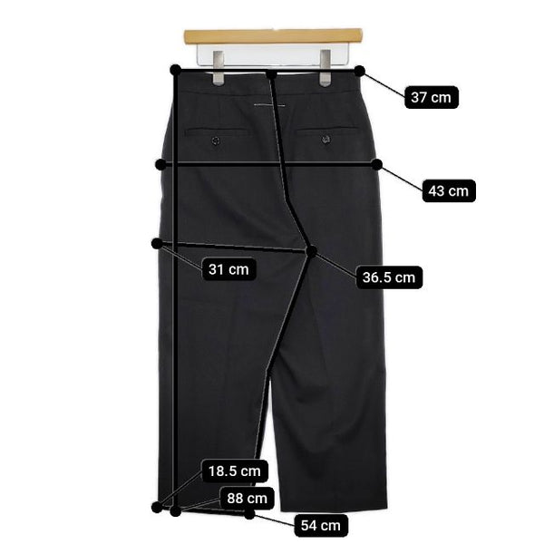 総丈:約88cm ウエスト:約37cm 股上:約36.5cm 股下:約54cm ヒップ:約43cm ワタリ幅:約31cm 裾幅:約18.5cm ※採寸画像がある商品はハンガーに吊るした状態での計測のため、平置きでの採寸とは差が生じる場合がございます。平置きでの実寸サイズをご希望の場合は、ご購入前に必ずご質問ください。