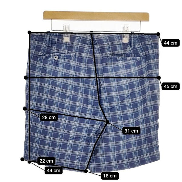 総丈:約44cm ウエスト:約44cm 股上:約31cm 股下:約18cm ヒップ:約45cm ワタリ幅:約28cm 裾幅:約22cm ※採寸画像がある商品はハンガーに吊るした状態での計測のため、平置きでの採寸とは差が生じる場合がございます。平置きでの実寸サイズをご希望の場合は、ご購入前に必ずご質問ください。