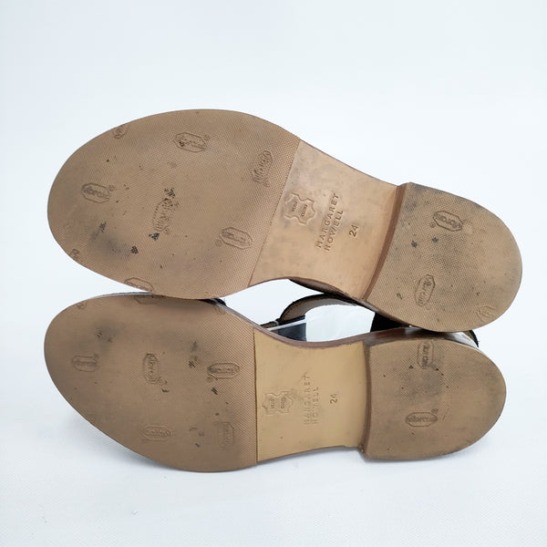 JP靴サイズ:24cm アウトソール全長:約25cm ソール最大幅:約9.7cm ヒール高:約2cm ※採寸画像がある商品はハンガーに吊るした状態での計測のため、平置きでの採寸とは差が生じる場合がございます。平置きでの実寸サイズをご希望の場合は、ご購入前に必ずご質問ください。