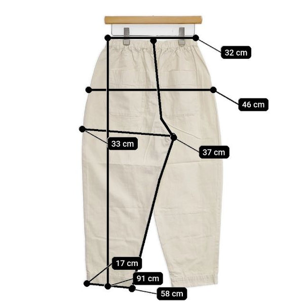 総丈:約91cm ウエスト:約32cm ウエスト最長:約46cm 股上:約37cm 股下:約58cm ヒップ:約46cm ワタリ幅:約33cm 裾幅:約17cm ※採寸画像がある商品はハンガーに吊るした状態での計測のため、平置きでの採寸とは差が生じる場合がございます。平置きでの実寸サイズをご希望の場合は、ご購入前に必ずご質問ください。