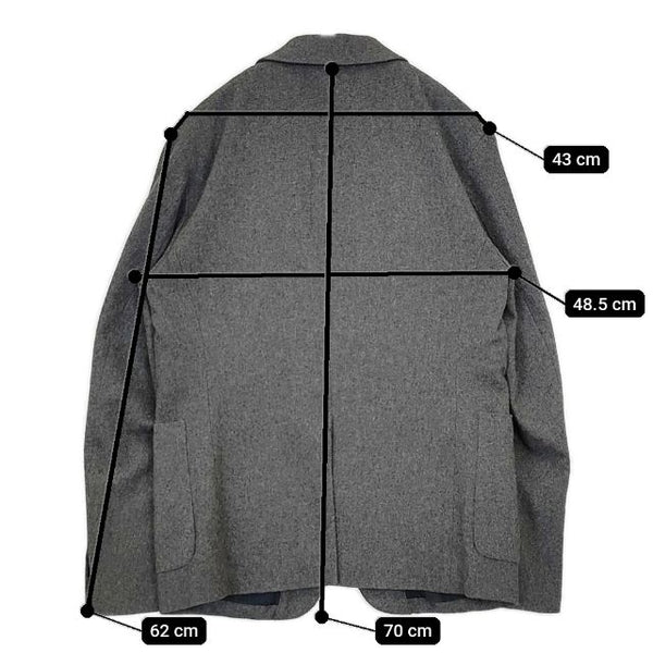 肩幅:約43cm 着丈:約70cm 身幅:約48.5cm 袖丈:約62cm ※採寸画像がある商品はハンガーに吊るした状態での計測のため、平置きでの採寸とは差が生じる場合がございます。平置きでの実寸サイズをご希望の場合は、ご購入前に必ずご質問ください。