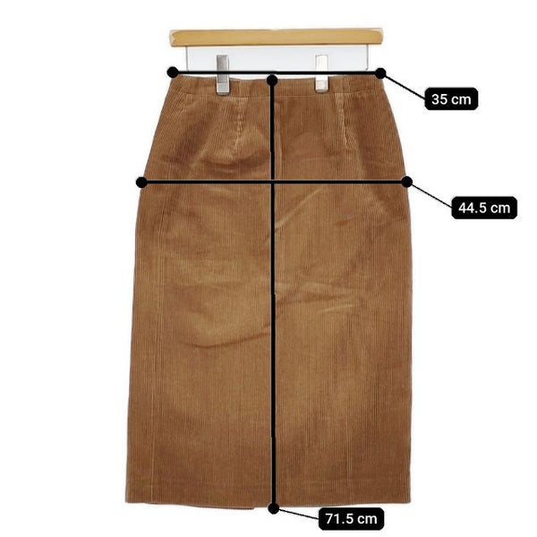 総丈:約71.5cm ウエスト:約35cm ヒップ:約44.5cm ※採寸画像がある商品はハンガーに吊るした状態での計測のため、平置きでの採寸とは差が生じる場合がございます。平置きでの実寸サイズをご希望の場合は、ご購入前に必ずご質問ください。