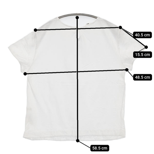 肩幅:約40.5cm 着丈:約58.5cm 身幅:約48.5cm 袖丈:約15.5cm ※採寸画像がある商品はハンガーに吊るした状態での計測のため、平置きでの採寸とは差が生じる場合がございます。平置きでの実寸サイズをご希望の場合は、ご購入前に必ずご質問ください。