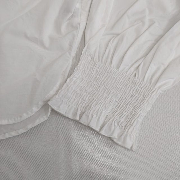 ブラウス シャツ 袖シャーリング 比翼ボタン コットン |