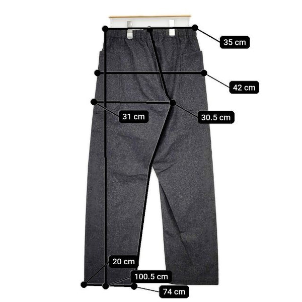 総丈:約100.5cm ウエスト:約35cm ウエスト最長:約40cm 股上:約30.5cm 股下:約74cm ヒップ:約42cm ワタリ幅:約31cm 裾幅:約20cm ※採寸画像がある商品はハンガーに吊るした状態での計測のため、平置きでの採寸とは差が生じる場合がございます。平置きでの実寸サイズをご希望の場合は、ご購入前に必ずご質問ください。