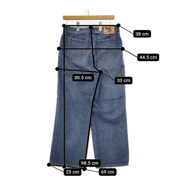 総丈:約98.5cm ウエスト:約38cm 股上:約33cm 股下:約69cm ヒップ:約44.5cm ワタリ幅:約30.5cm 裾幅:約25cm ※採寸画像がある商品はハンガーに吊るした状態での計測のため、平置きでの採寸とは差が生じる場合がございます。平置きでの実寸サイズをご希望の場合は、ご購入前に必ずご質問ください。