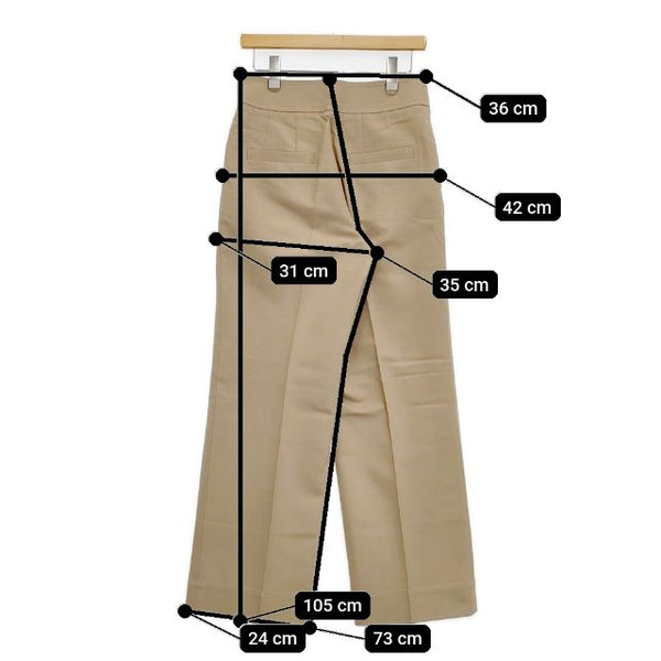 総丈:約105cm ウエスト:約36cm 股上:約35cm 股下:約73cm ヒップ:約42cm ワタリ幅:約31cm 裾幅:約24cm ※採寸画像がある商品はハンガーに吊るした状態での計測のため、平置きでの採寸とは差が生じる場合がございます。平置きでの実寸サイズをご希望の場合は、ご購入前に必ずご質問ください。