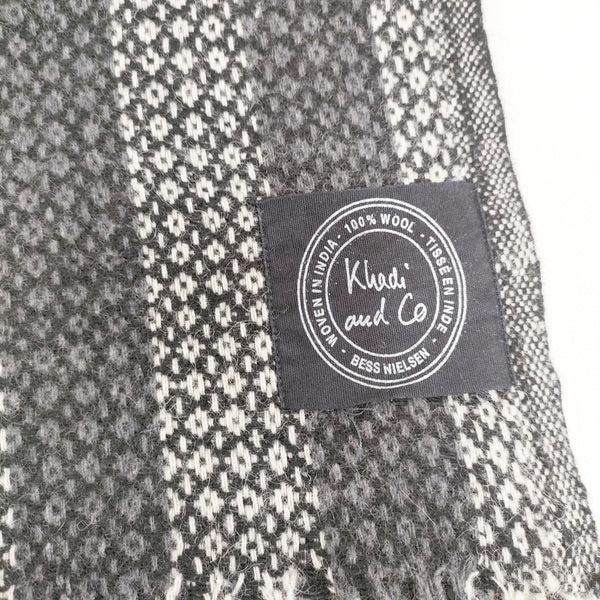 Khadi and Co 大判ストール インド製 ウール ブランケット ブラック グレー レディース カディ アンド コー【中古】5-1128T◎