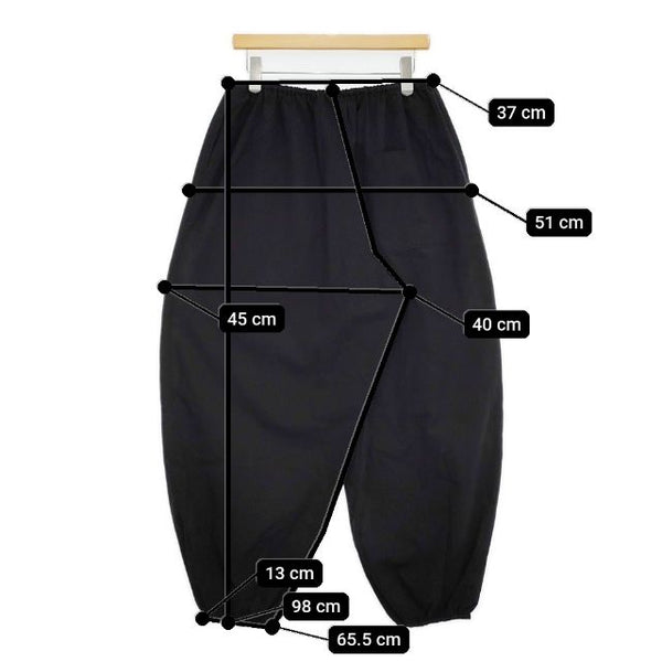 総丈:約98cm ウエスト:約37cm ウエスト最長:約63cm 股上:約40cm 股下:約65.5cm ヒップ:約51cm ワタリ幅:約45cm 裾幅:約13cm ※採寸画像がある商品はハンガーに吊るした状態での計測のため、平置きでの採寸とは差が生じる場合がございます。平置きでの実寸サイズをご希望の場合は、ご購入前に必ずご質問ください。
