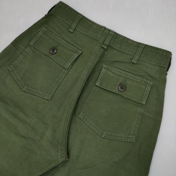総丈:約93cm ウエスト:約33cm 股上:約33cm 股下:約64cm ヒップ:約42.5cm ワタリ幅:約30.5cm 裾幅:約17cm ※採寸画像がある商品はハンガーに吊るした状態での計測のため、平置きでの採寸とは差が生じる場合がございます。平置きでの実寸サイズをご希望の場合は、ご購入前に必ずご質問ください。
