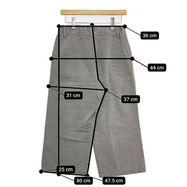 総丈:約80cm ウエスト:約36cm ウエスト最長:約40cm 股上:約37cm 股下:約47.5cm ヒップ:約44cm ワタリ幅:約31cm 裾幅:約25cm ※採寸画像がある商品はハンガーに吊るした状態での計測のため、平置きでの採寸とは差が生じる場合がございます。平置きでの実寸サイズをご希望の場合は、ご購入前に必ずご質問ください。
