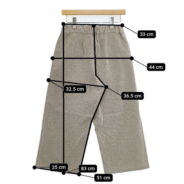 総丈:約83cm ウエスト:約33cm ウエスト最長:約42cm 股上:約36.5cm 股下:約51cm ヒップ:約44cm ワタリ幅:約32.5cm 裾幅:約25cm ※採寸画像がある商品はハンガーに吊るした状態での計測のため、平置きでの採寸とは差が生じる場合がございます。平置きでの実寸サイズをご希望の場合は、ご購入前に必ずご質問ください。