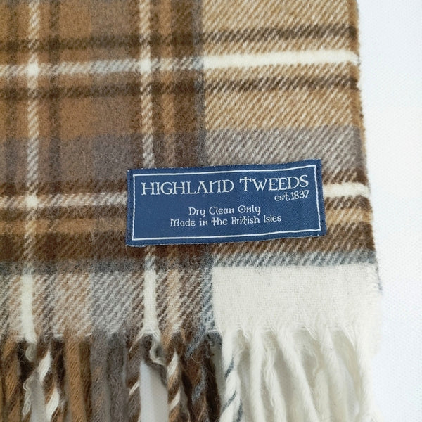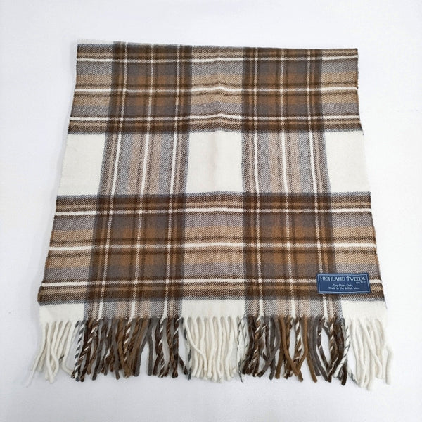 HIGHLAND TWEEDS 英国製 チェック ストール マフラー ブラウン ホワイト レディース ハイランドツイード【中古】5-1128T◎