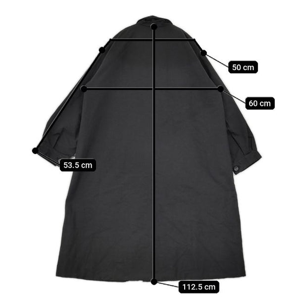 肩幅:約50cm 着丈:約112.5cm 身幅:約60cm 袖丈:約53.5cm ※採寸画像がある商品はハンガーに吊るした状態での計測のため、平置きでの採寸とは差が生じる場合がございます。平置きでの実寸サイズをご希望の場合は、ご購入前に必ずご質問ください。