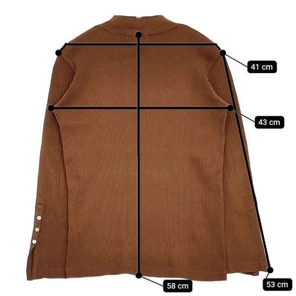 肩幅:約41cm 着丈:約58cm 身幅:約43cm 袖丈:約53cm ※採寸画像がある商品はハンガーに吊るした状態での計測のため、平置きでの採寸とは差が生じる場合がございます。平置きでの実寸サイズをご希望の場合は、ご購入前に必ずご質問ください。