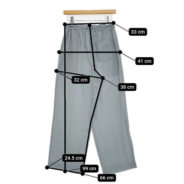 総丈:約99cm ウエスト:約33cm ウエスト最長:約48cm 股上:約38cm 股下:約66cm ヒップ:約41cm ワタリ幅:約32cm 裾幅:約24.5cm ※採寸画像がある商品はハンガーに吊るした状態での計測のため、平置きでの採寸とは差が生じる場合がございます。平置きでの実寸サイズをご希望の場合は、ご購入前に必ずご質問ください。