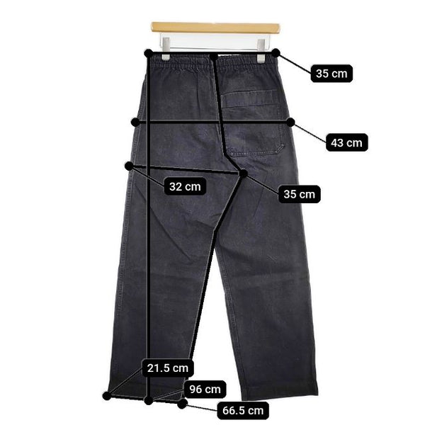 総丈:約96cm ウエスト:約35cm ウエスト最長:約42cm 股上:約35cm 股下:約66.5cm ヒップ:約43cm ワタリ幅:約32cm 裾幅:約21.5cm ※採寸画像がある商品はハンガーに吊るした状態での計測のため、平置きでの採寸とは差が生じる場合がございます。平置きでの実寸サイズをご希望の場合は、ご購入前に必ずご質問ください。