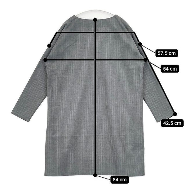 肩幅:約57.5cm 着丈:約84cm 身幅:約54cm 袖丈:約42.5cm ※採寸画像がある商品はハンガーに吊るした状態での計測のため、平置きでの採寸とは差が生じる場合がございます。平置きでの実寸サイズをご希望の場合は、ご購入前に必ずご質問ください。