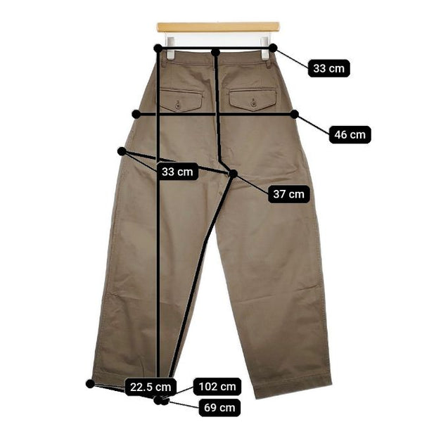 総丈:約102cm ウエスト:約33cm 股上:約37cm 股下:約69cm ヒップ:約46cm ワタリ幅:約33cm 裾幅:約22.5cm ※採寸画像がある商品はハンガーに吊るした状態での計測のため、平置きでの採寸とは差が生じる場合がございます。平置きでの実寸サイズをご希望の場合は、ご購入前に必ずご質問ください。