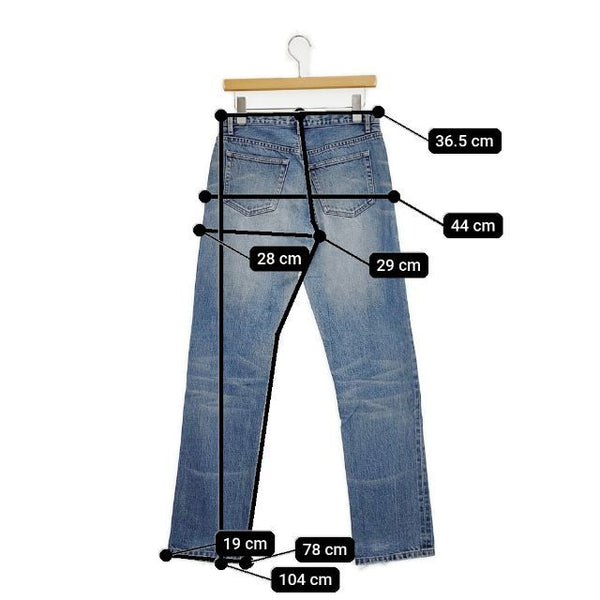 総丈:約104cm ウエスト:約36.5cm 股上:約29cm 股下:約78cm ヒップ:約44cm ワタリ幅:約28cm 裾幅:約19cm