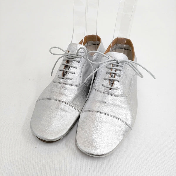 シューズ・靴 キッドレザーメタリックレースアップシューズ |