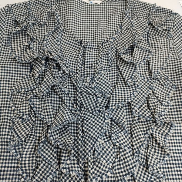 ブラウス シャツ インディゴ度甘平チェックフリルブラウス 定価26400円 |