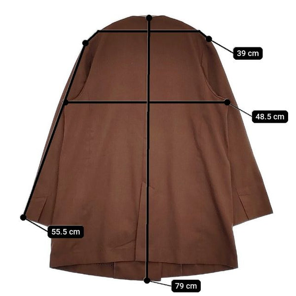 肩幅:約39cm 着丈:約79cm 身幅:約48.5cm 袖丈:約55.5cm ※採寸画像がある商品はハンガーに吊るした状態での計測のため、平置きでの採寸とは差が生じる場合がございます。平置きでの実寸サイズをご希望の場合は、ご購入前に必ずご質問ください。