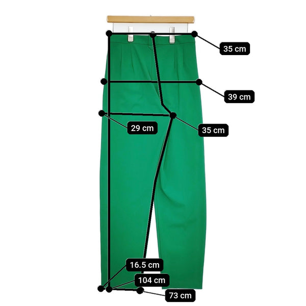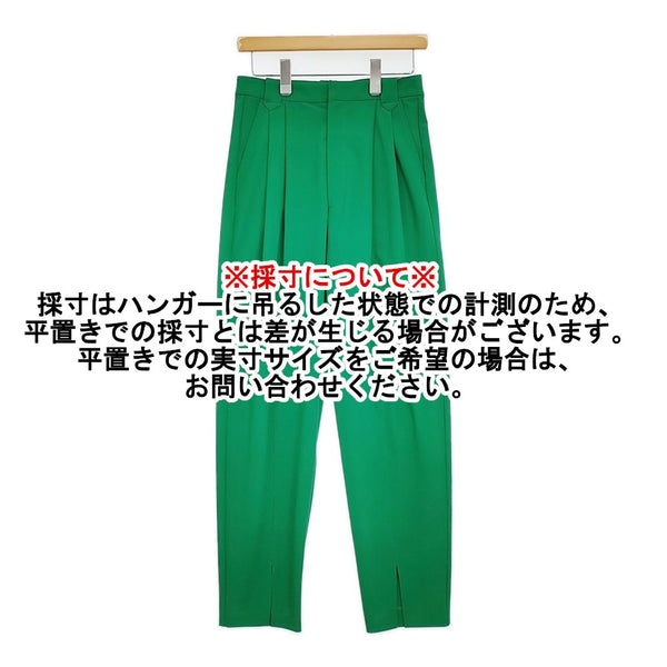 総丈:約104cm ウエスト:約35cm 股上:約35cm 股下:約73cm ヒップ:約39cm ワタリ幅:約29cm 裾幅:約16.5cm ※採寸画像がある商品はハンガーに吊るした状態での計測のため、平置きでの採寸とは差が生じる場合がございます。平置きでの実寸サイズをご希望の場合は、ご購入前に必ずご質問ください。