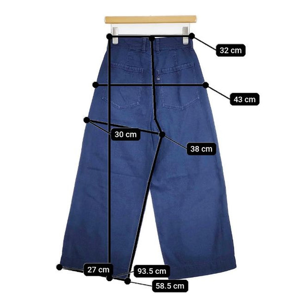 総丈:約93.5cm ウエスト:約32cm 股上:約38cm 股下:約58.5cm ヒップ:約43cm ワタリ幅:約30cm 裾幅:約27cm ※採寸画像がある商品はハンガーに吊るした状態での計測のため、平置きでの採寸とは差が生じる場合がございます。平置きでの実寸サイズをご希望の場合は、ご購入前に必ずご質問ください。
